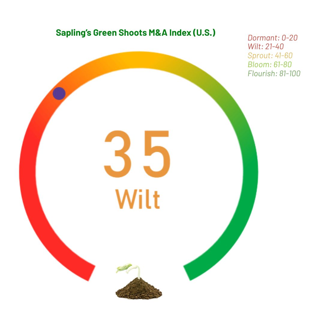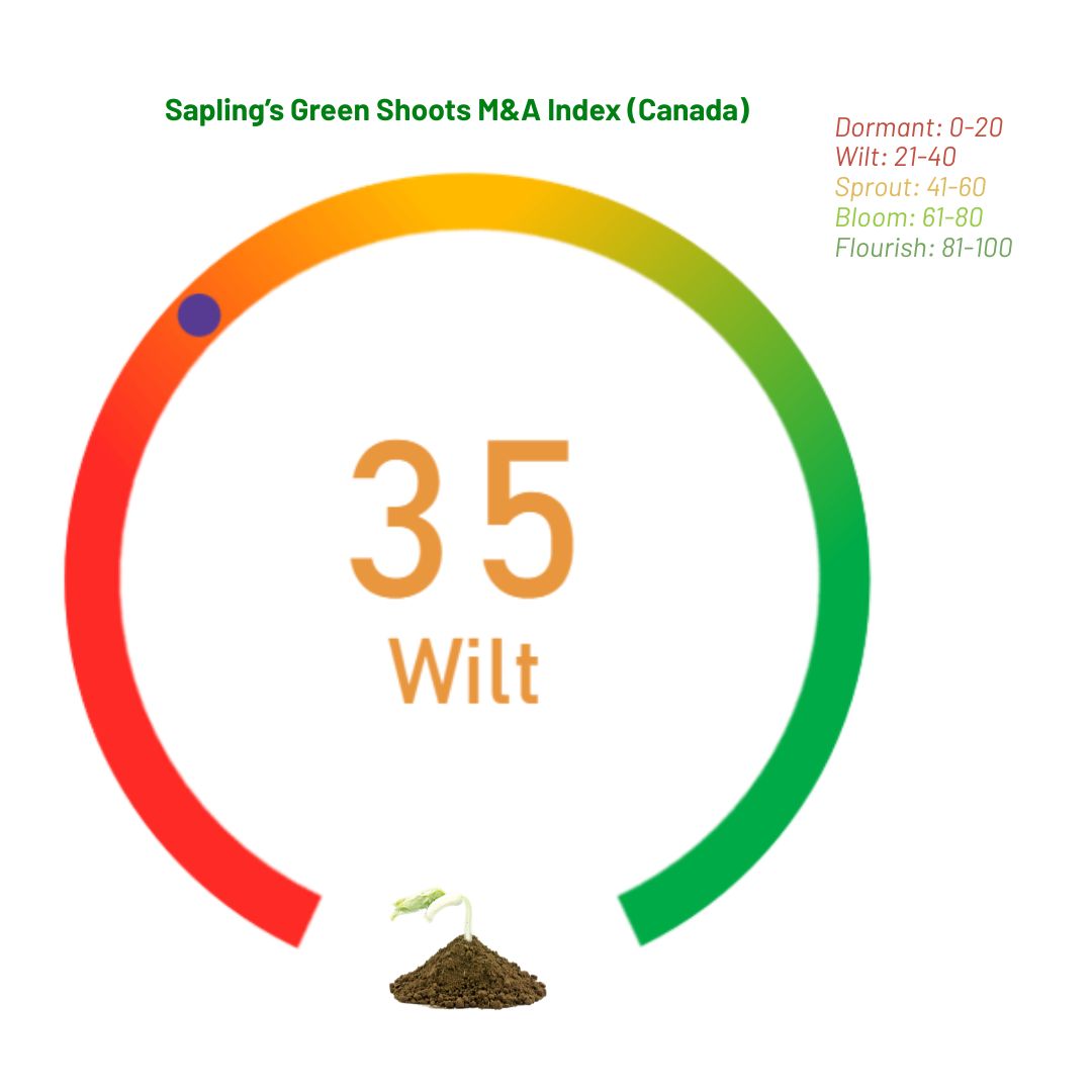 To capture shifts in market sentiment around mergers and acquisitions (M&A), Sapling created a monthly updated Green Shoots M&A Index. The index is built using both actual and predicted M&A deal numbers and is designed to reflect monthly market activity momentum. It tracks deal activity trends and provides a simple, intuitive signal of where Canada and U.S. M&A Deals Index Momentum might be heading.